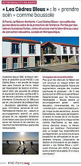Ce mois-ci, le magazine de la ville de Pornic consacre un article à la Maison d’Enfants Les Cèdres Bleus et à ses missions essentielles au service des familles et des enfants accompagnés.